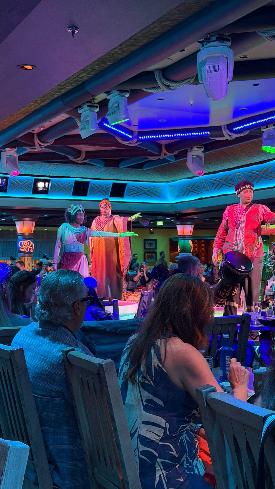 As guests dine, the story of The Lion King unfolds around them. Storytellers Mwongozo and Shaha guide the journey, joined by live musicians, an interpretive dancer, and stunning theatrical effects. Iconic songs such as “Circle of Life,” “Hakuna Matata,” and “He Lives in You” bring the savanna to life in a truly immersive way.