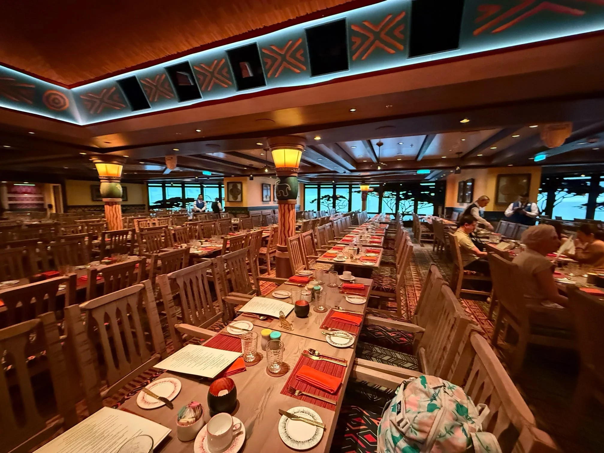 One of the signature features of Disney Cruise Line is Rotational Dining. Guests rotate through three uniquely themed main dining restaurants during their sailing while their serving team rotates with them. This ensures consistent service while offering a different dining experience each night.