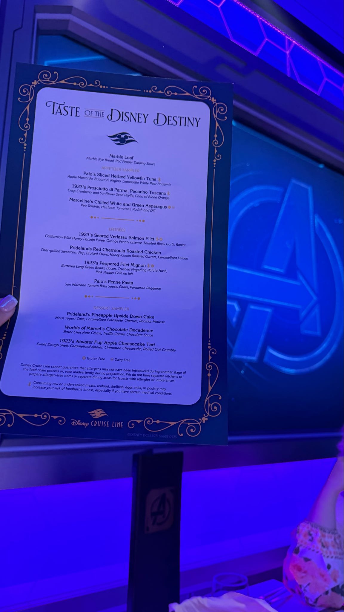 On Disney Destiny, guests will experience Marvel Celebration of Heroes: Groot Remix, hosted by Rocket and Groot. During the meal, diners enjoy interactive entertainment, trivia, and an “awesome mix” of music as Groot’s playful antics turn the evening into a surprise celebration.