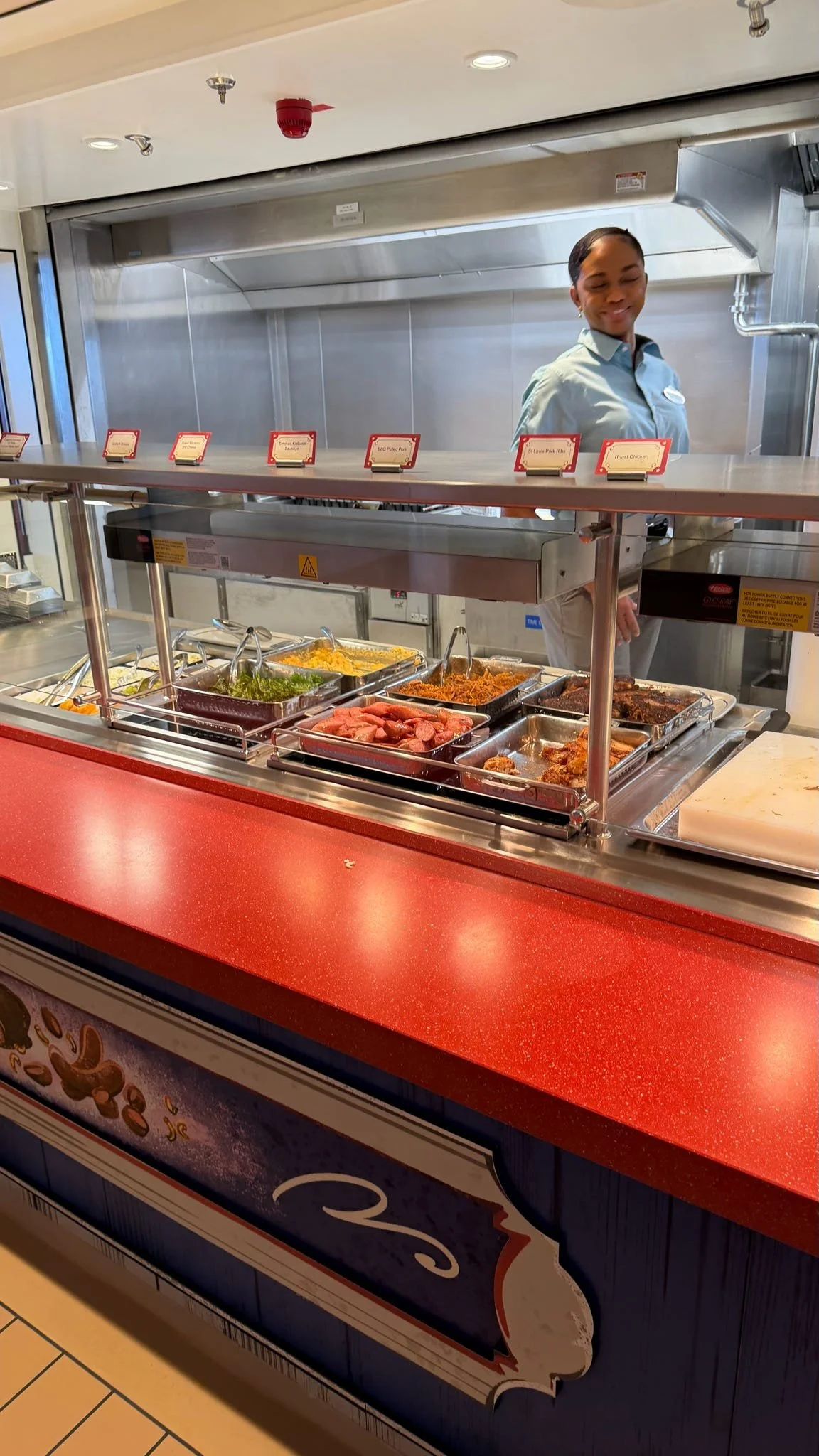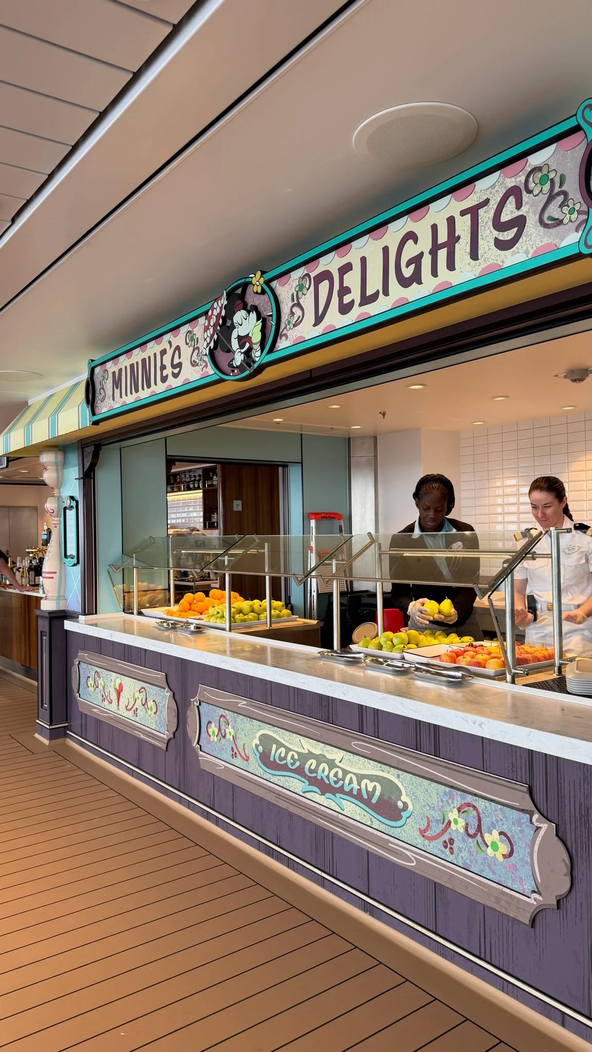 Located on the upper decks, Mickey & Friends Festival of Foods is the go-to spot for quick bites and casual meals. This open-air dining area includes five themed venues: